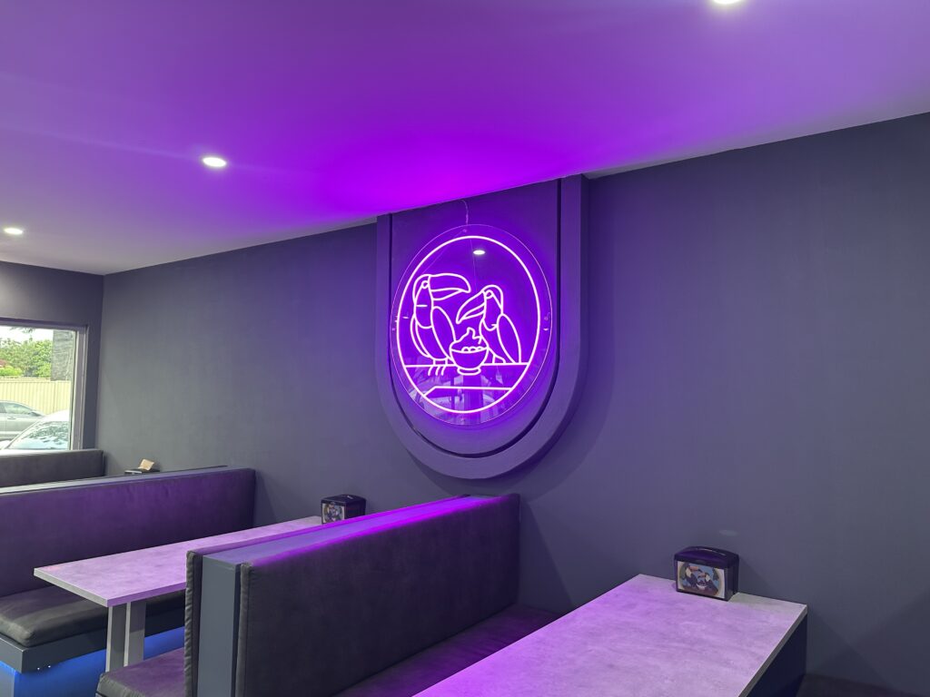 TROPICAL TREATS PURPLE NEON FLEX February 20, 2026February 20, 2026 Sambo AD no comment on TROPICAL TREATS PURPLE NEON FLEX Spec: LED Neon Flex – on the panelLED Source: SA 7834H – SA B- Mini Zigzag 120 LED Strip 12V Purple